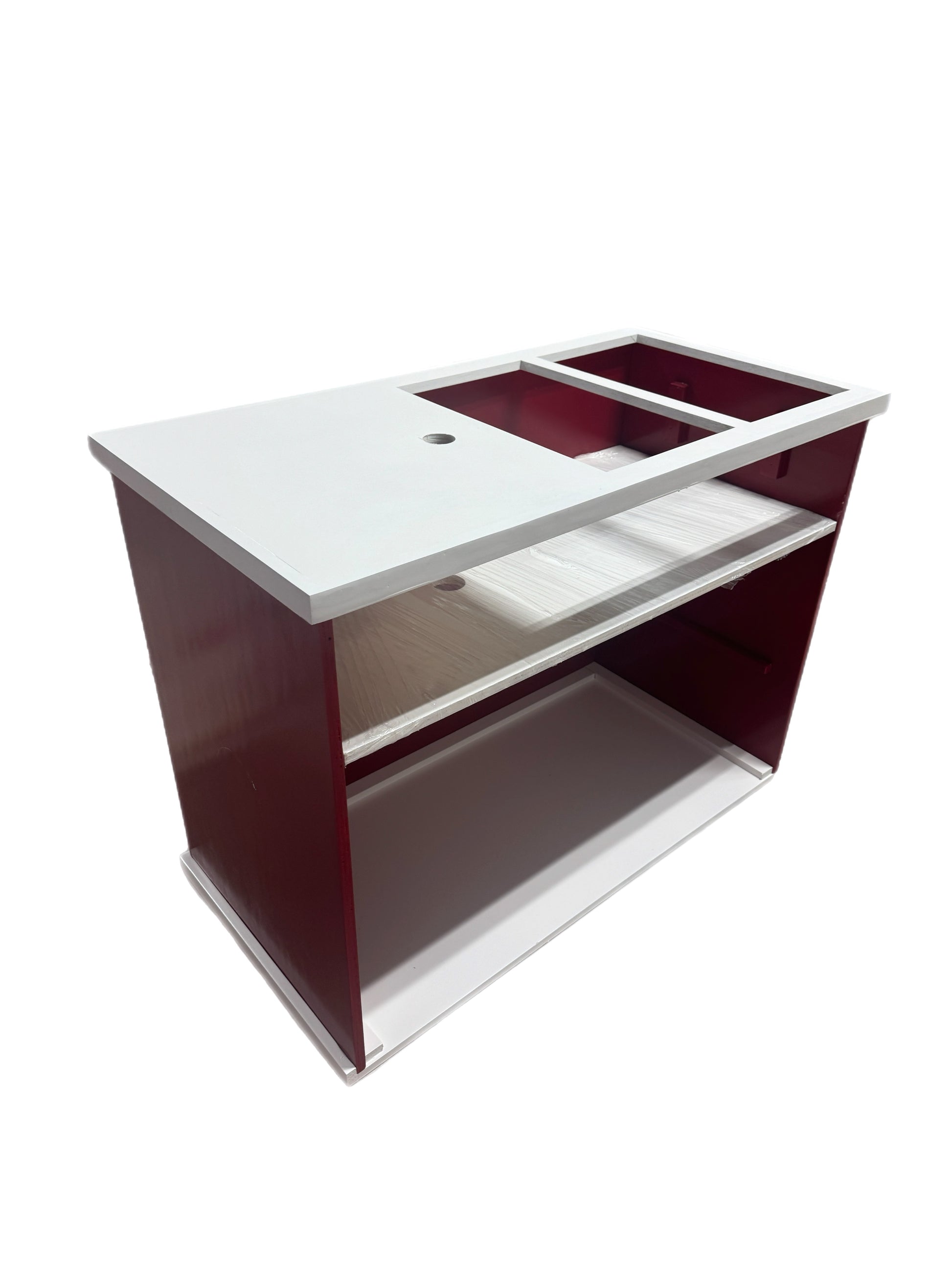 Cart is comprised of Top, front panel, two side panels, two side shelves, bottom and inner shelf